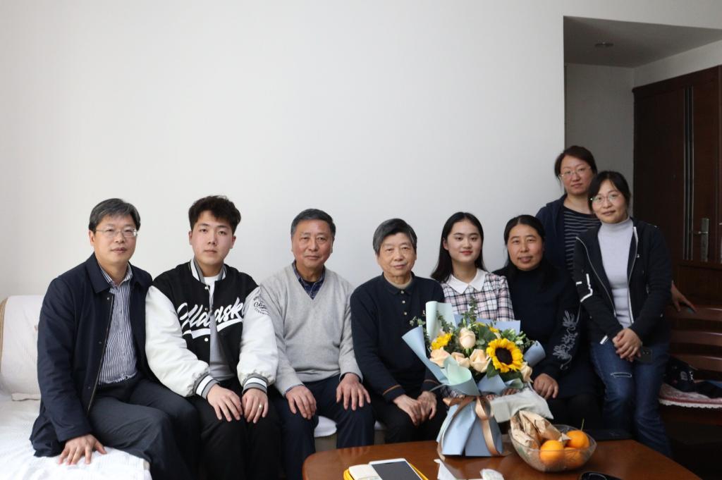 慰问中,学生代表为老党员祝庭辉献上鲜花和慰问品,并送上真挚的祝福和问候,感谢老党员祝庭辉多年来为学院与教育事业作出的贡献。