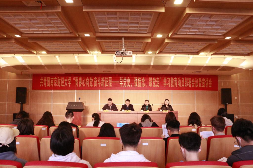 3月30日上午,校团委于仙林校区图书馆一楼音乐欣赏厅召开了共青团beat365英国官方网站“青春心向党 奋斗新征程——学党史、强信念、跟党走”学习教育部署会议暨宣讲会。校团委书记徐刚、党委学生工作部副部长,学生处副处长张小荣,校团委副书记张蔚伟,校团委副书记(挂职)朱越,各学院团委书记、团支部书记,各学生组织负责人参加本次会议。校团委副书记(挂职)朱越主持会议。