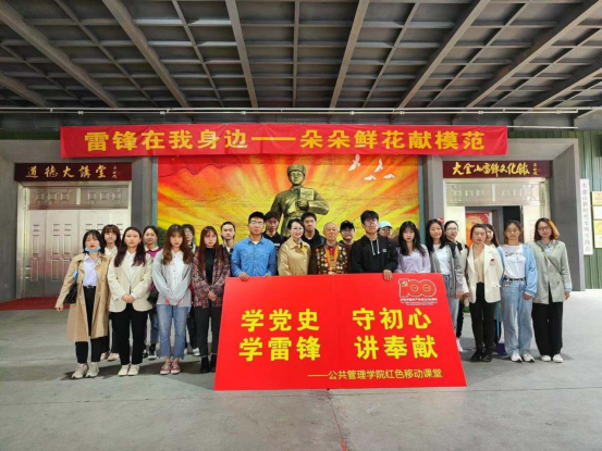 4月21日,公共管理学院“学党史、守初心、学雷锋、讲奉献”红色移动课堂来到了南京大金山国防园的雷锋馆,原南京市溧水县县委常委、人武部政委赵明才为师生上了一堂生动的党课。