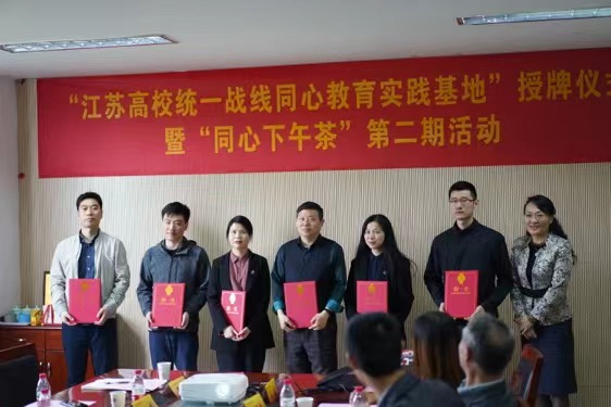 4月29日下午,beat365“江苏高校统一战线同心教育实践基地”授牌仪式暨第二期“同心下午茶”活动在仙林校区大学生活动中心317会议室举办。省委教育工委统群处副处长郝峰,校党委常委、统战部部长吕戎出席活动。“同心文化书苑”特聘讲师代表、党派基层组织(统战团体)班子成员代表、党委统战部全体工作人员参加活动。活动由党委统战部副部长陈洁主持。