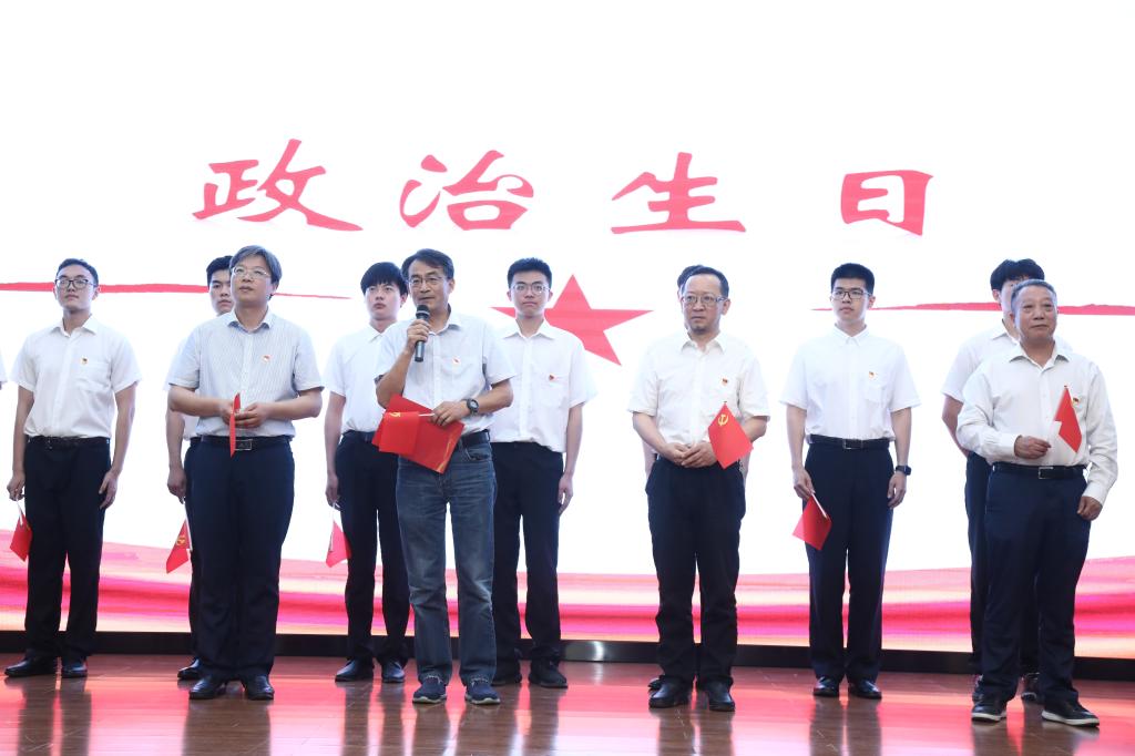 第三篇章主题是“奋斗”。学生新党员也被邀请上台集体过“政治生日”,党员教师代表为新党员佩戴党员徽章,共同见证这光荣时刻。“每个党员有两个生日,一个是自己的出生日,为了不忘对生命和父母的感恩;另一个特殊的生日就是‘政治生日’,提醒激励党员时刻不忘初心、牢记使命。”李群副校长勉励青年一代要坚定理想信念,锤炼实干精神,将自身所学与社会实际相结合,早日练就过硬本领,以社会主义接班人和建设者的身份,为实现中华民族伟大复兴的中国梦贡献属于自己的青春力量。