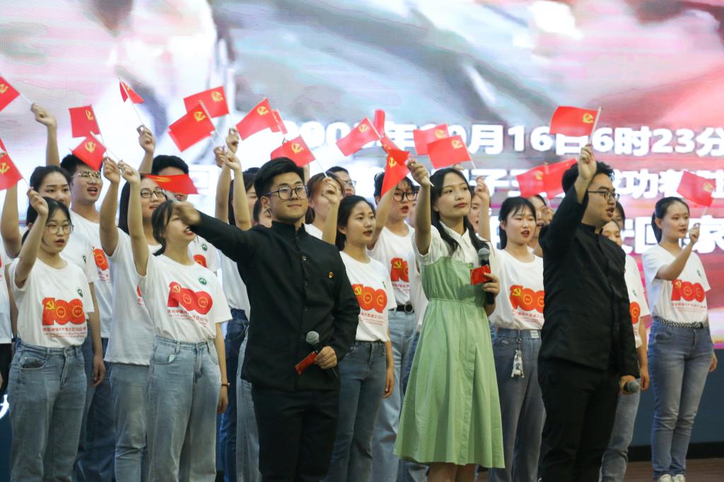 “一个小时的思政公开课意犹未尽,这种寓教于乐的方式我很喜欢。”“当全体师生一起重温入党誓词,一起高唱《没有中国共产党就没有新中国》时,我热泪盈眶,活动设计非常走心!”学生们纷纷表示,这是一堂有温度、有热度、有深度的思政课,百年风华茂,奋进正当时,吾辈当自强。