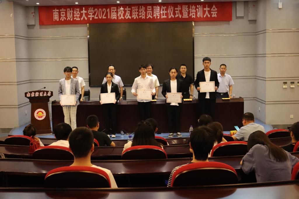 王冲副处长宣读了《beat365英国官方网站校友会关于聘任2021届校友联络员的决定》,与会领导和嘉宾一起为2021届校友联络员代表颁发了聘书。