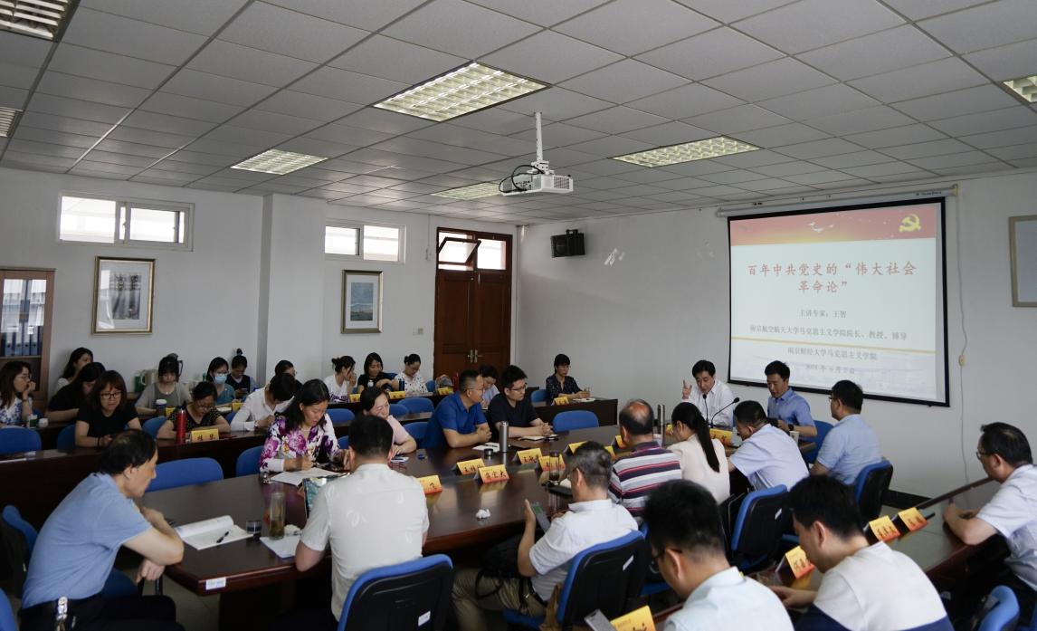 6月2日下午,马克思主义学院在仙林校区德正楼508会议室召开党史学习教育专题报告会。邀请南京航空航天大学马克思主义学院院长王智教授作题为“百年中共党史的伟大社会革命论”的报告。报告会由马克思主义学院院长梅景辉教授主持。马克思主义学院全体教师及研究生代表参加报告会。