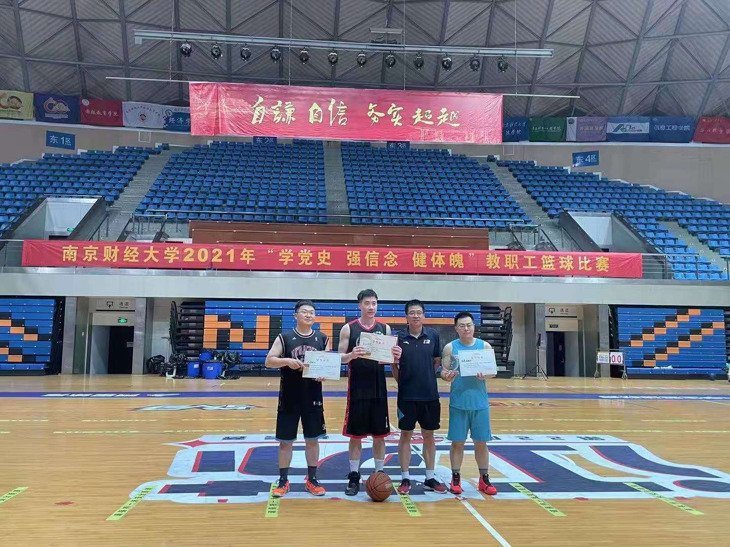 为庆祝中国共产党成立100周年,推进党史学习教育走深走实,增进教职工的凝聚力和团队协作精神,营造顽强拼搏、积极进取的校园文化氛围,6月22日至7月2日,由校工会、校体育部主办,校教职工篮球协会承办的2021年“学党史强信念健体魄”教职工篮球比赛在仙林校区体育馆举行。