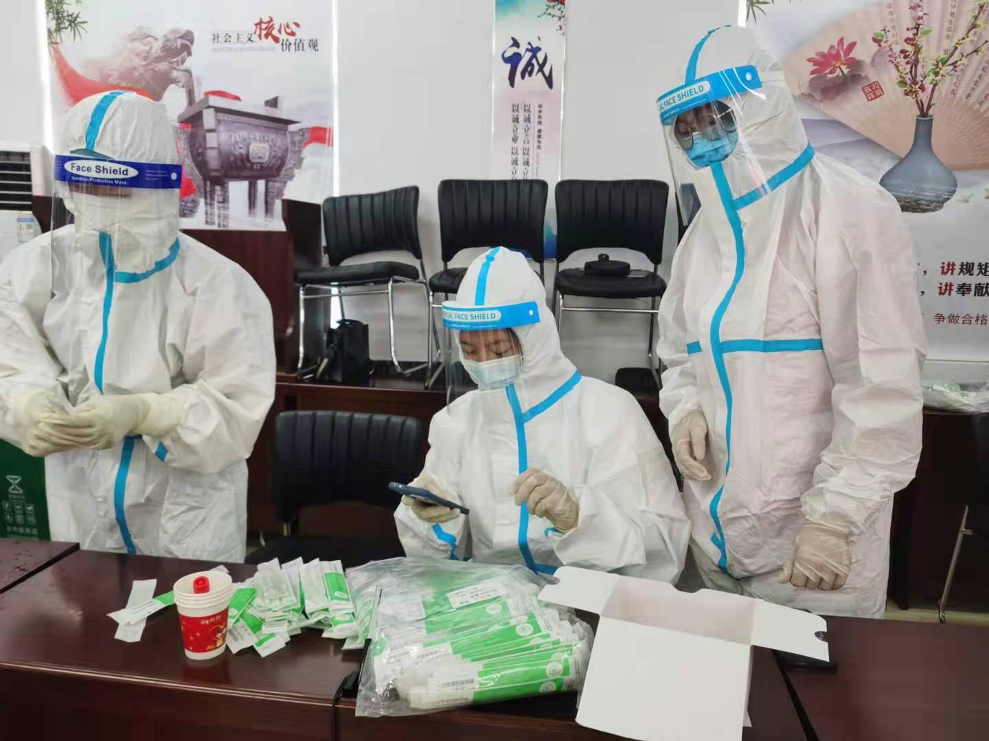 “菁萃”小队的曹佳妮为前来进行核酸检测的村民们收集核酸采样码