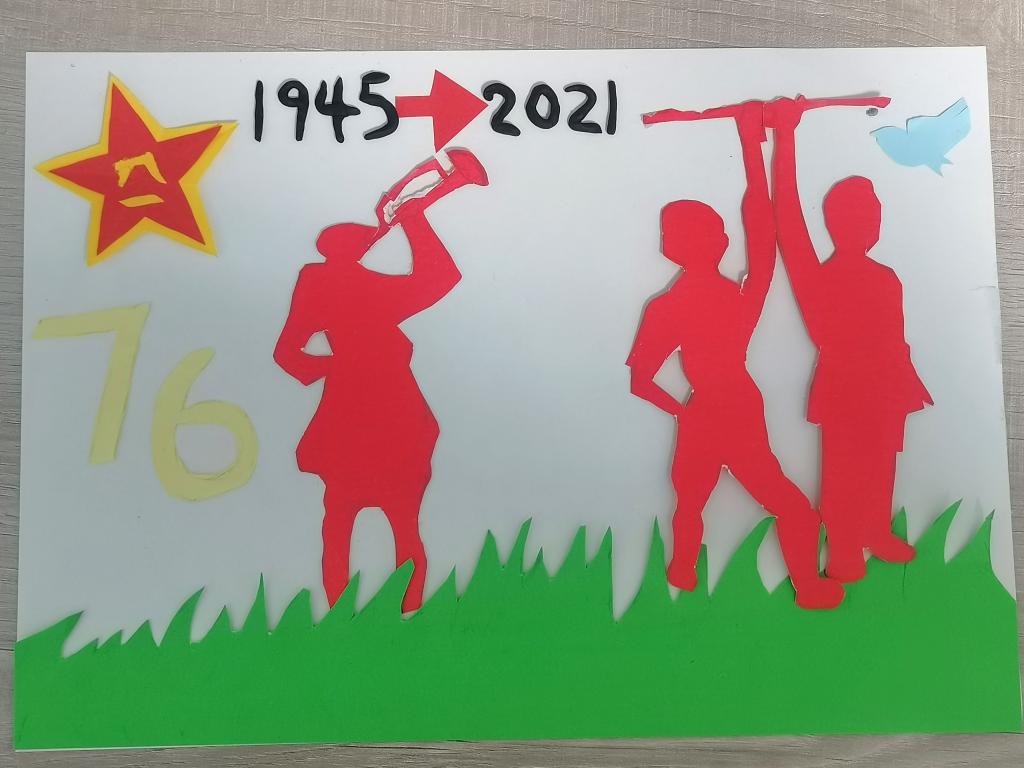 粘土画创作者王文静同学表示:“一段岁月,波澜壮阔,刻骨铭心;一种精神,穿越历史,辉映未来。我们应当铭记那段浴血奋战的历史,牢记以爱国主义为核心的民族精神。”除了黏土,同学们还巧妙地运用了剪纸,呈现出先辈们吹响号角、手握钢枪共御敌人的画面。赫然屹立着的数字76,代表着抗日战争和世界反法西斯战争胜利76周年,也表现了先烈们同仇敌忾、视死如归,奏响了气壮山河的英雄凯歌。
