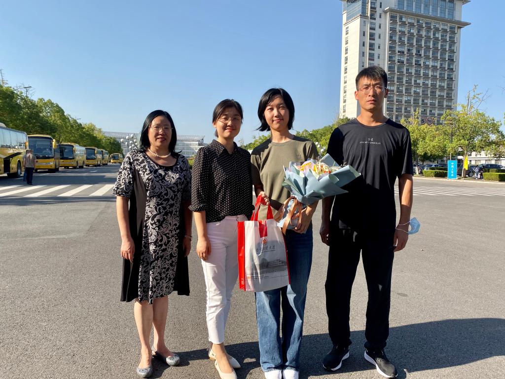 9月23日,来自北京的李熹颜回到阔别两年的学校进行复学报到,“刚踏入校园,外国语学院的老师和同学们就给我送来了鲜花和学习用品。”这让刚返校的李熹颜感觉很温暖。学院党委副书记刘英华和李丽萍老师送上鲜花祝贺她开启人生新阶段,校人武部办公室王利涛老师赠送书籍和学习用品,希望她持续点亮自己精彩的人生。“接过你的行囊,我们便是一家人。”辅导员黄婕用浓浓的关爱让李熹颜倍加欣喜。