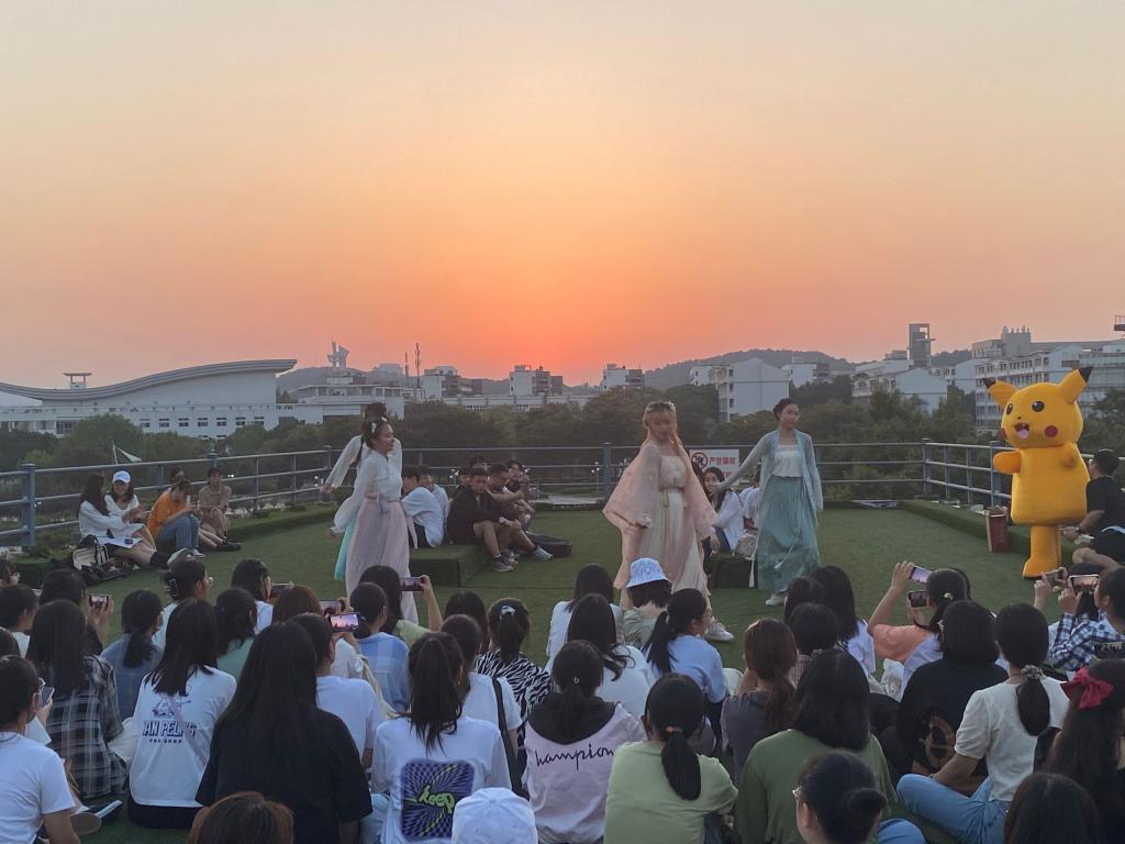 星点点,灯荧荧,草地为伴,音乐为友。10月2日傍晚,工商管理学院在仙林校区德济楼天台草坪举办“萤火光,风华歌”草坪迎新音乐节。工商管理学院2021级新生参加活动。