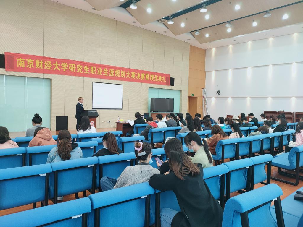 10月21日下午,研究生职业生涯规划大赛决赛在仙林校区图书馆世界之窗举行。校学生处副处长李娜、校研究生院副院长华凌志、中国平安财产保险股份有限公司江苏省分公司招聘经理陆正莉、高顿财经市场部主管姜柳含担任评委。赛场上,选手们各展宏图,对未来的职业规划明确而各有特色。姜柳含主管说道:“参加一些含金量高的比赛以及学习相应的技能也是职业规划中的重要环节。”华凌志副院长总结道:“研究生职业生涯规划大赛的举办顺应环境需求,有利于促使同学们进一步剖析自我、研究职场、树立目标。同学们自我评估全面、职业探索深入、职业目标清晰并且行动计划详尽。希望同学们通过此次比赛能够发现不足,继续钻研,立足现实,胸怀未来,砥砺前行!”最终,工商管理学院2020级旅游专硕杨诗茹获一等奖,应用数学学院2019级研究生金青龙和会计学院2021级会计专硕3班王璐晨获二等奖,应用数学学院2021级研究生应望希、工商管理学院2021级研究生张楚怡和法学院2021级研究生闫咏竹获三等奖。