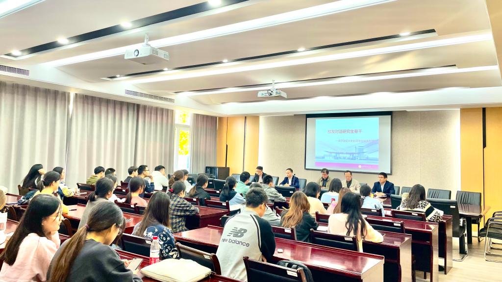 10月28日下午,建校65周年系列活动之“校友对话”研究生骨干论坛在仙林校区德经楼308会议室举办。党委研究生工作部部长孙丹兵、国际经贸学院党委书记张阳军、校友代表2005级产业经济学研究生冯海华和2005级会计学研究生钟贵江参加活动。活动由党委研究生工作部孙辉老师主持。