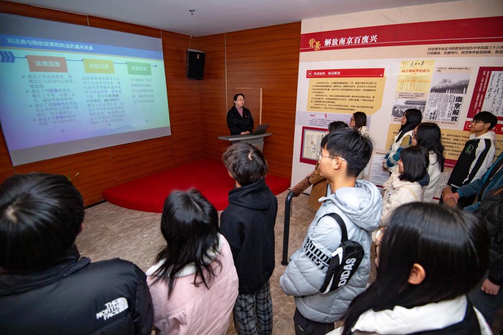 在第八个国家宪法日、第四个“宪法宣传周”期间,南京税收博物馆和beat365财政与税务学院,带领大学生普法志愿者走进南京税收博物馆开设了一堂生动有趣的“双师课堂”,该课堂基于财政与税务学院开设的“中国税制”专业课,分为“民法典与税收法治关系的理论阐释”和“民法典与税收法治实践(实务操作)”两部分,将“双师”教学模式融入博物馆实境课堂,促进普法志愿者将专业理论知识体系向实践技能转化,以馆校联合方式进行思政教学的新探索。