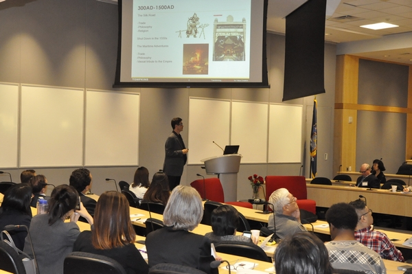 迈克尔·扎克尔副总裁在讲座中以翔实的案例生动地诠释了“中国梦”的内涵。他从15世纪航海大发现谈起,对比了郑和下西洋及古代丝绸之路的历史影响,指出中国一直奉行和平的外交政策,自古以来的对外探寻之路都是和平的交流之路,并不是为了侵略扩张以称霸世界。他以亚投行、“一带一路”倡议和G20杭州会议为例,重点介绍了中国近年来在外交方面的成就,并用生动的图片展示了近二十年来中国基础设施建设的巨大进步。此外,迈克尔·扎克尔还与观众分享了阿里巴巴等中国企业在底特律参加“连接世界”美国中小企业论坛的盛况。他强调,错过中国就会错过未来,只有了解中国、学习中国文化才有可能在新一轮的中国发展浪潮中获取红利。