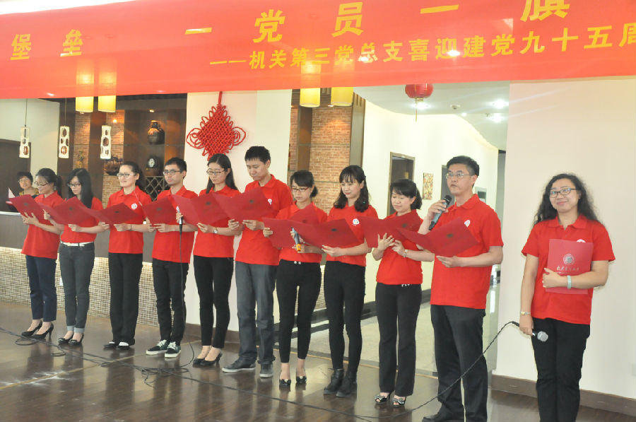 6月30日下午,在党的生日来临之际,机关第三党总支全体党员齐聚仙林校区17楼教工之家,以党史知识竞赛、唱响红歌等形式喜迎中国共产党成立95周年,重温党的光辉历程。