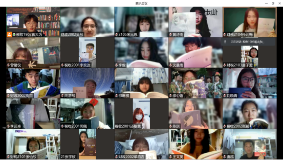 此次活动发起人税收1902班蒋大为同学表示,这样的云阅读形式要求高度自律,有利于大家相互监督,相互促进,可以创造更好的学习氛围,也能提高大家的自我学习能力。