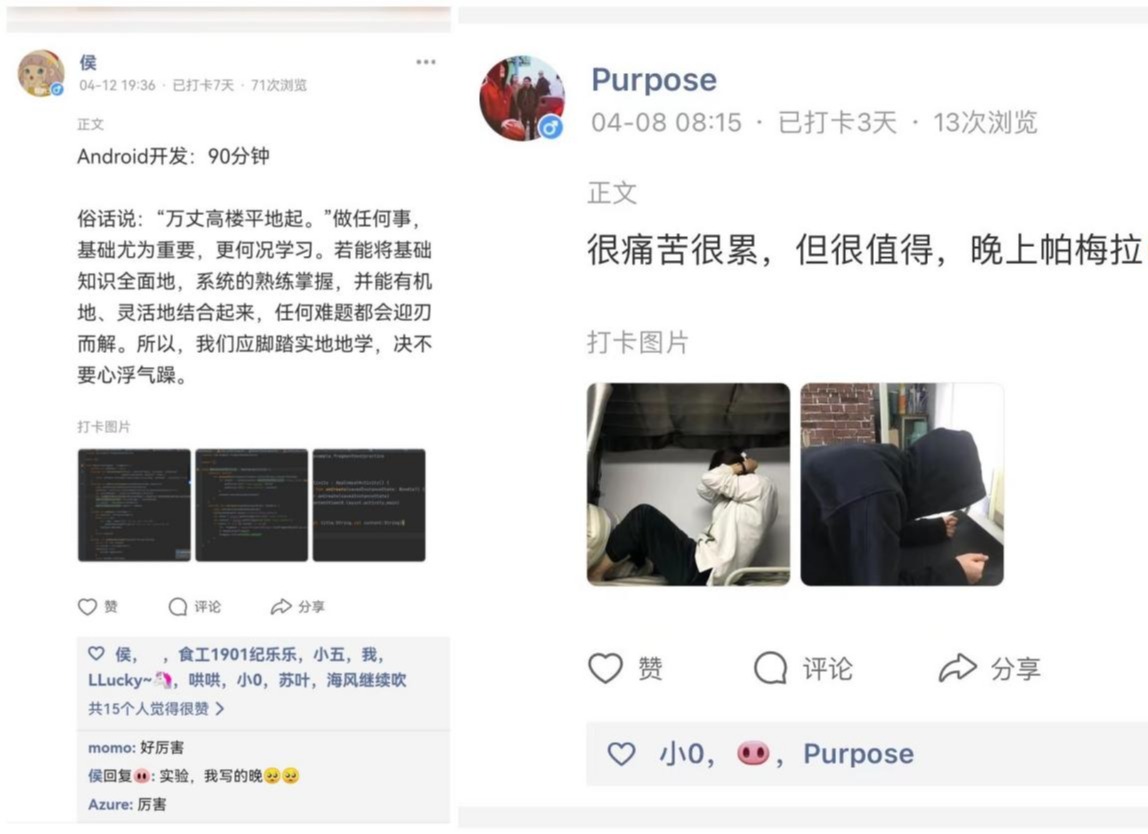 学生打卡学习和运动