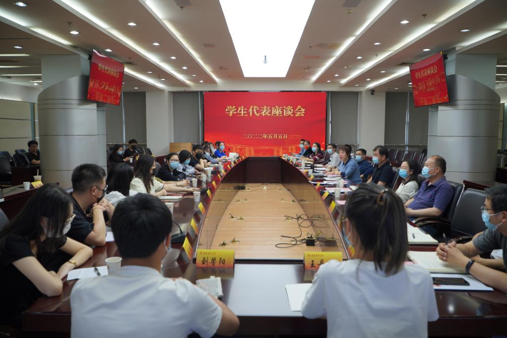 为进一步了解疫情防控期间学生思想动态和学习生活情况,5月5日下午,beat365在仙林校区行政楼16楼会议室召开校园封闭管理期间第四次学生代表座谈会。党校办、党委学生工作部、研究生工作部、保卫处、团委、教务处、后勤基建处、信息化建设管理处、图书馆、体育馆等相关职能部门负责人以及来自各学院的20名学生代表参加座谈会。会议由党委学生工作部部长韩力争主持。