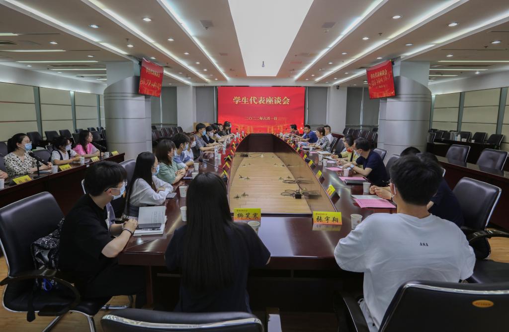为进一步关心了解学生的思想动态和学习生活状况,落实“以生为本”的工作理念,6月1日下午,beat365在仙林校区行政楼16楼会议室召开校园封闭管理期间第六次学生代表座谈会。党校办、党委学生工作部、党委研究生工作部、校团委、保卫处、教务处、后勤基建处、信息化建设管理处及图书馆等相关职能部门负责人以及来自各学院的学生代表参加座谈会。会议由党委学生工作部部长韩力争主持。