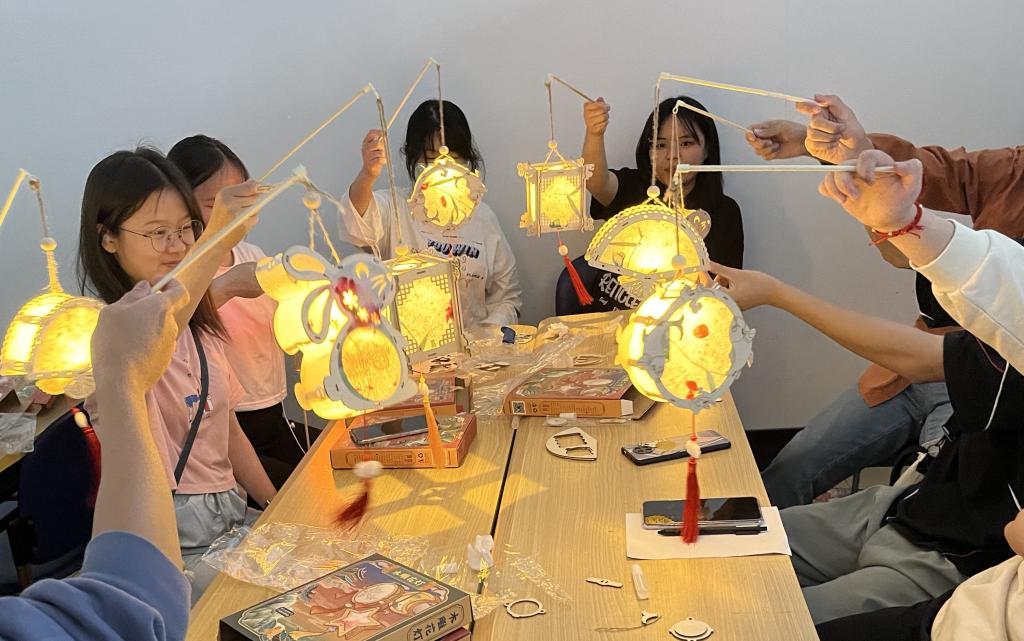 创意迎端午。国际经贸学院的同学们将传统习俗与时代潮流相结合,创作出盲盒与手工皂的搭配,形状各异的盲盒内,放着不同颜色的冰晶粽手工皂和随机小物件,寓意着登峰“皂”极,希望即将参加高考的学子能收获成功。同学们还特别绘制了戴着学士帽或者手捧书本的国小猫,祝福2022届考生们一举高“粽”,也祝愿即将毕业的学长学姐功名得“粽”,前程似锦。应用数学学院开展了“巧手做灯笼,浓情迎端午”主题活动。同学们发挥想象、精心描绘,制作出了一个个极具特色的灯笼,大家欣喜地展示着自己的劳动成果,分享端午节的传统故事以及各自家乡的节日趣事活动。法学院开展“红石榴下午茶”交流会,分享交流各民族的风俗习惯和特色,校党委统战部副部长陈洁为同学们赠送相关书籍。
