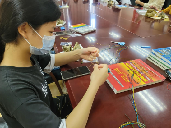 巧手庆端午。食品科学与工程学院的师生们手工制作香囊、信物、五彩绳,让端午风韵流转指间,让彼此间的情谊用香囊传递。并绘制端午鸭蛋,用彩色的画笔勾画童年乐趣,画出每个人心中的端午佳节。营销与物流管理学院分工会组织部分师生开展了“巧手编手绳 粽香庆端午”活动,活动分为投壶、编绳、包粽子三部分内容,现场气氛活跃。信息工程学院开展“一年一端午,一岁一安康”主题活动,同学们自行编织彩绳,送予学校后勤管理人员,并送上端午祝福。“彩线轻缠红玉臂,小符斜挂绿云鬟”,经济学院的学子们为老师们送上了亲手缝制的香囊。小小香囊,是炎炎夏日里学生对老师平安健康的美好祝福,也是疫情防控时期间师生情意的传递。
