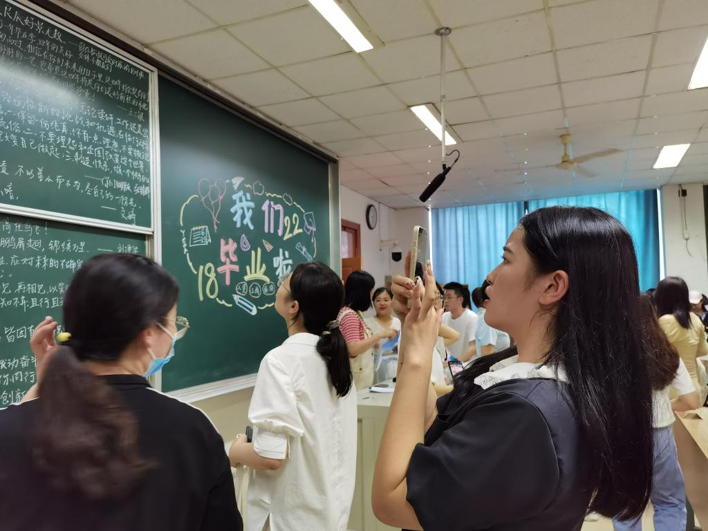 6月23日下午,工商管理学院教师在仙林校区博远楼110教室共同为毕业生们上好最后一堂班会课。即将退休的老教授和刚刚走上工作岗位的青年教师,共同以板书的形式,在教室黑板上写下了各自对毕业生们最真挚的祝福。工商管理学院党委书记杨林、院长万绪才、2018级辅导员田艾灵以及全体毕业生参加班会。班会由学院党委副书记全真真主持。