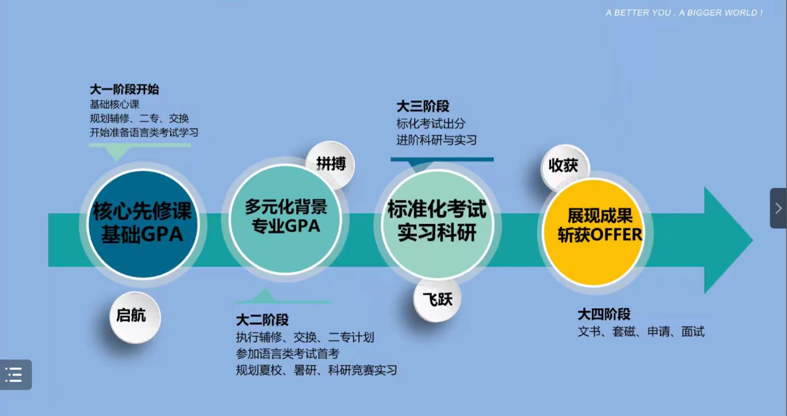为助力beat365高水平大学建设和高质量人才培养,服务学生做好多元发展路径规划,10月26日晚,国际合作与交流处线上开展了2022级新生国际竞争力提升规划专题讲座。本场讲座以“走进南财 走向世界”为主题,旨在为大一新生提供国际化发展规划指导和留学经验交流分享。国际合作与交流处副处长(主持工作)杨智华、副处长马健及相关项目负责老师参加活动并为新生答疑解惑。讲座由国际合作与交流处朱珊珊老师主持。来自各学院的100多名学生参加讲座。