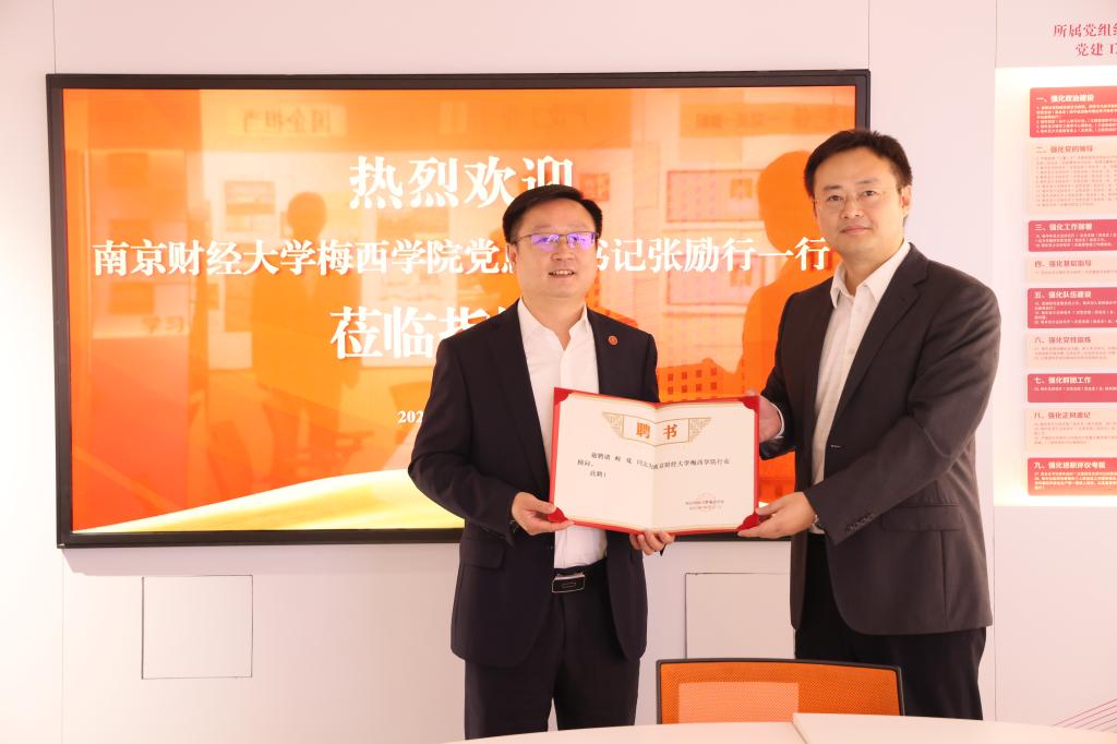交流会上,双方就院企合作、党建共建进行了深入交流。胡俊副总经理介绍了“钟山红岭”品牌创建、支部特色创新以及党建工作融合经营发展的具体做法。张励行书记就梅西学院的办学情况、特色优势进行了详细介绍。双方在党建共建、就业实习、社会服务等方面达成共识。会议最后,张励行书记向胡俊副总经理颁发了行业顾问聘书。