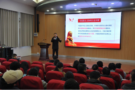 徐刚书记以“坚定历史自信 坚定文化自信——把马克思主义同中华优秀传统文化结合起来”为题,以深厚的历史地理学功底、丰富的党史史料,旁征博引,从马克思主义如何立足中国、马克思主义如何在中国发展、何为“中国”等方面,带领大家深入了解了中华优秀传统文化的深厚思想与理论根源,揭示了其同科学社会主义价值观主张的高度契合性。徐刚书记表示,我们必须坚定历史自信、文化自信,坚持古为今用、推陈出新,把马克思主义思想精髓同中华优秀传统文化精华贯通起来、同人民群众日用而不觉的共同价值观念融通起来,不断赋予科学理论鲜明的中国特色,不断夯实马克思主义中国化时代化的历史基础和群众基础,让马克思主义在中国牢牢扎根。