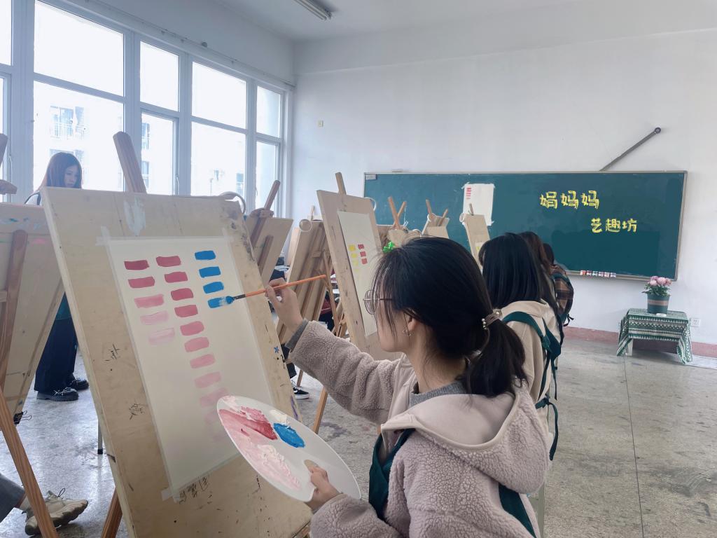 为倡导美育理念,促进同学们提升美术和手工制作技能,增强创新思维和想象力,“娟妈妈”辅导员工作室承办艺趣坊,为对美术手工有兴趣的同学们提供绘画纹理画和制作羊毛毡饰物教学。3月16日中午,“娟妈妈”艺趣坊开班仪式在仙林校区艺术学科楼312画室举行。艺术设计学院党委书记刘浩、党委副书记张荣霞、视觉传达设计专业老师管静、辅导员徐娟老师以及来自全校各学院的12名同学参加开班仪式。