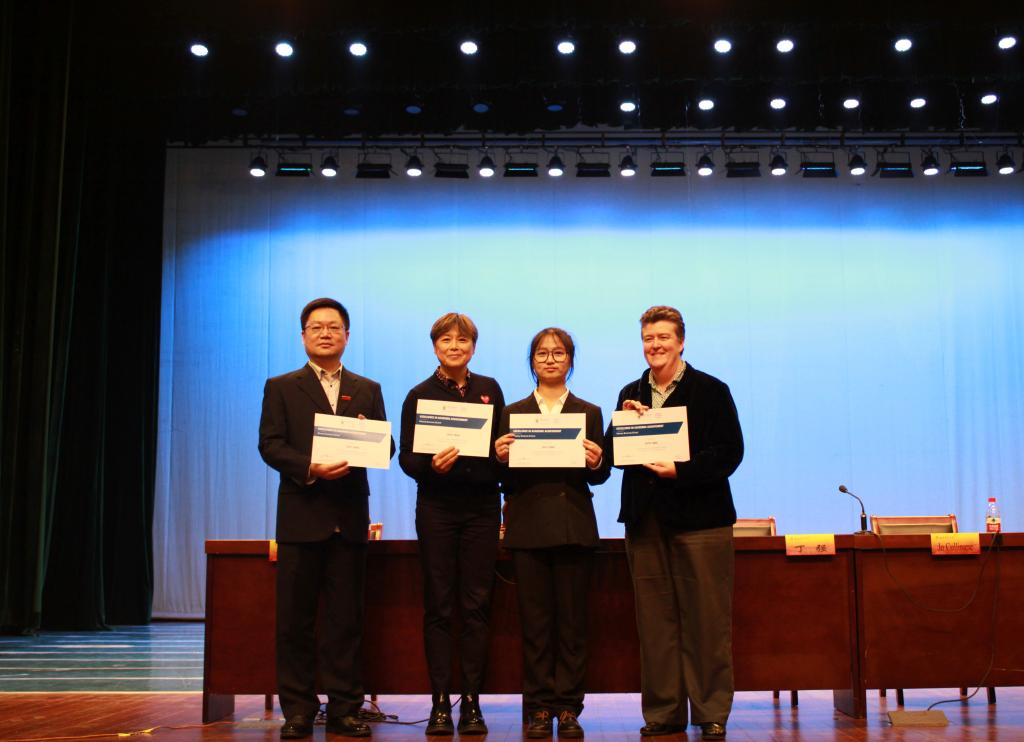 梅西大学新方教师团队发言。Jo Cullinane副院长肯定了梅西学子入学以来取得的优异成绩,表达了新方对梅西学子的赞赏,并期待在今后的面对面教学中与同学们共创佳绩。Liping Zou副院长以幽默风趣的口吻向大家表示问候,对同学们过去一年取得的成绩表示欣喜,并激励同学们在日后的学习中取得更优异的成绩,做更好的自己。随后,中新方老师为新方课程学业优异的学生进行颁奖,并与获奖同学们合影留念。