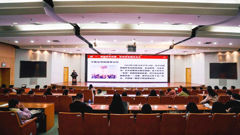 唐忠宝教授以全球性的视野和纵深性的思维,深入浅出地诠释了党的二十大报告中“六个坚持”的内涵。他以个人成长经历、网络大V热门事件及国外价值观教育现状等为例,引导新时代大学生坚定共产主义信仰,坚定历史自信,坚持人民至上,坚持用习近平新时代中国特色社会主义思想的世界观和方法论指导自己的学习、实践和工作,将实现个人的理想抱负谱写为青春奋斗的乐章,融入实现中华民族伟大复兴的新征程。讲座内容贴近学生,语言精彩幽默,启发观众深刻思考。公开课结束,学生热情不减,就“小镇做题家”、网络负面言论疏导等热点问题提问,唐忠宝教授耐心解答,现场掌声不断。
