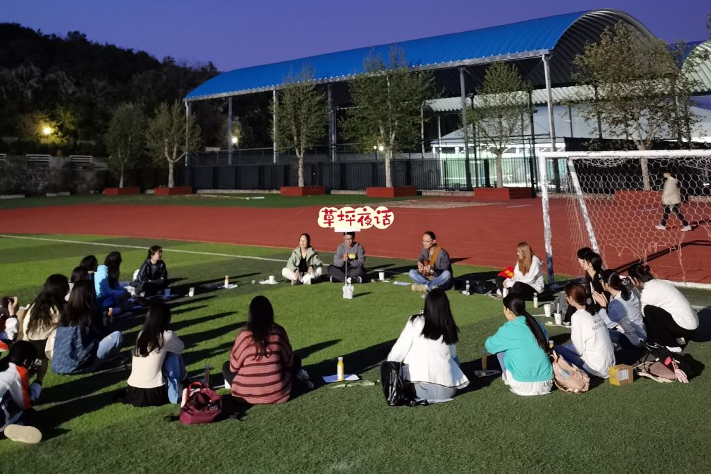 4月14日晚,外国语学院本科生党支部政治辅导员、学院党委书记李骏与本科生党员在仙林校区中苑操场开展“草坪夜话”,通过“认知自己——我是谁”“轻吟浅唱——让音乐打开心灵”“锦囊妙计——谈谈我的理想”“运动舒展——身体与灵魂的旅行”“达人心语——重塑我的信心”五个环节,展开了一场别开生面的“美的历程”。“认知自己”环节中,南京体育学院运动训练学院党总支书记葛见珠引导同学们用一句话概括自己的性格特征,在分享和倾听中认知自己、理解他人。艺术设计学院王巍老师以原创歌曲《花园里》和经典著作《小王子》,和同学们畅谈音乐与文学给人生带来的启迪、希望与美好。“锦囊妙计”环节中,每位学生党员匿名写下了“刚进校时的理想”“现在的理想”以及“当前的困惑”,老师随机抽取并进行耐心细致的解答。李骏书记表示,阅读、运动、音乐、电影等等,是大学生活中必不可少的部分,要善于发现美、欣赏美、传递美和创造美,在美的历程中树立崇高的理想信念和美好的生活愿望。学院将持续开展“夜话美好”活动,和大家一起享受大学生活“美的历程”。