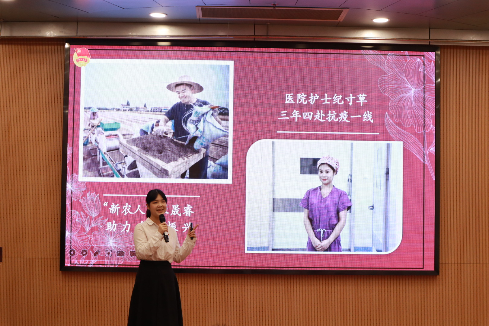 为进一步发挥团干部的示范引领作用,校团委创新组建了“百舸青年宣讲团”,选拔校级学生组织骨干、学院团学骨干,面向全校青年以青春分享、视频展播等多种形式开展宣讲活动。比赛现场,秦韶华副部长为“百舸青年宣讲团”授旗,新闻2001班马驭同学代表青年宣讲团上台接受授旗。