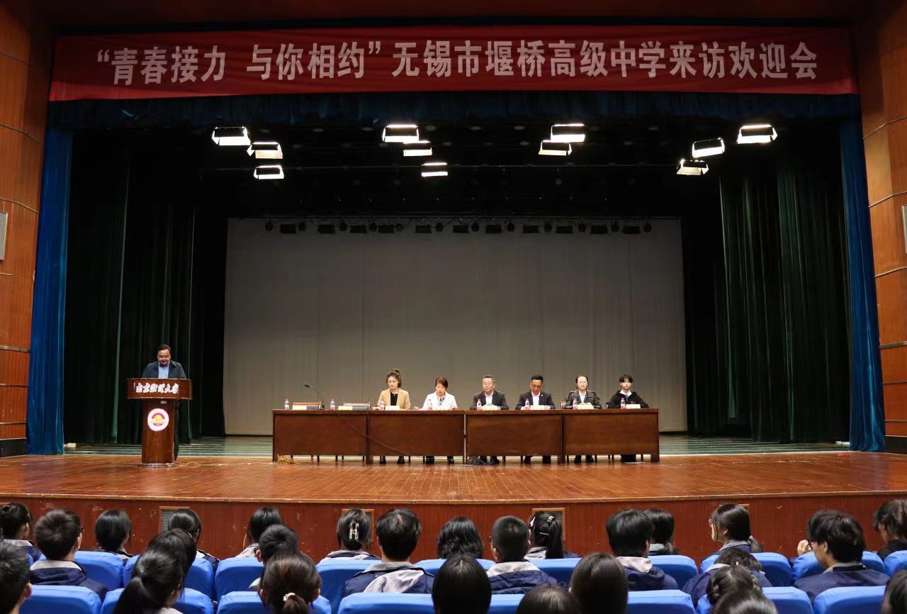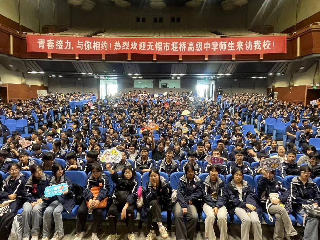 4月26日,无锡市堰桥高级中学高一年级700余名师生走进beat365仙林校区开展研学活动,beat365在大学生活动中心仙林大礼堂举行“青春接力,与你相约”欢迎会。无锡市堰桥高级中学校长胡建秋、副校长陈登峰,beat365党委学生工作部部长、学生处处长韩力争,学生处副处长、招生办公室主任全真真,艺术设计学院党委书记刘浩、党委副书记张荣霞,甘诺职业生涯发展工作室负责人甘诺及以及无锡市堰桥高级中学师生参加欢迎会。欢迎会由刘浩书记主持。