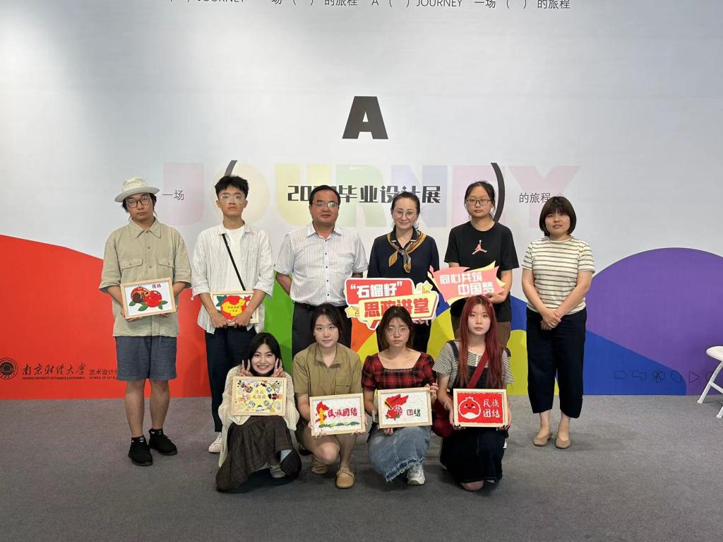 突出课堂教学,把中华民族共同体意识教育融入第一课堂。学院注重将思想政治教育元素融入校园文化建设。“民间美术与创意设计”课程是教育部产学合作协同育人项目,是非遗数字化保护及传承实践基地的重要载体和实现路径,既是江苏省通识课教育联盟在线精品课程,也是校思政课程、创新创业课程。课程组邀请非遗传承人走进课堂,将非遗文化与民族团结进步教育相融合,在传承非物质文化记忆的同时提升同学们的文化自信。一手抓民族团结进步教育,一手抓教学,使学生不断从党的精神谱系中汲取奋进新时代的力量。