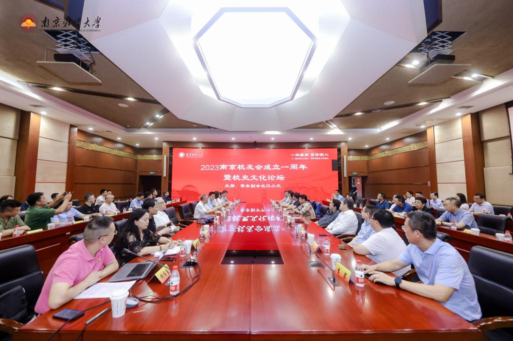 名誉会长汤曙东讲话。他表示,学校的办学历史是宝贵的历史资源,挖掘学校的文化内涵,对传承和发扬南财精神具有重要意义。