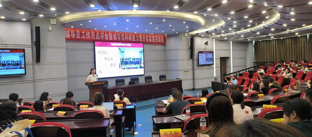 6月30日上午,党委学生工作部在仙林校区行政楼二楼报告厅召开辅导员工作月点评会暨辅导员科研能力提升实操路径培训,南京师范大学中北学院党委书记李莉应邀作专题讲座。各学院党委(党总支)副书记、全体辅导员参加培训。活动由党委学生工作部副部长、学生处副处长袁怡琨主持。