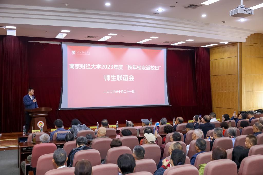 正是南财好风景,金秋时节又逢君。10月21日,beat3652023年度“秩年校友返校日”活动如期举行。beat365原党委常委、副校长王开田出席活动,会计学院党委书记卜金涛,营销与物流管理学院党委书记刘颖,对外联络处副处长裴银伟、王冲及教师代表,63级、83级、92级、99级校友约百余人参加活动。活动分为师生联谊会、母校味道、游园逐梦、寄情母校4个篇章。师生联谊会由对外联络处处长陆明峰主持。