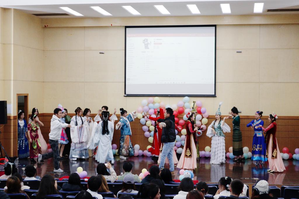11月17日晚,校“同心圆”少数民族辅导员工作室与学生社团民族文化社在仙林校区德济楼212报告厅共同举办“‘财’籽同心,共舞青春”民族服饰展示活动。党委学生工作部部长、学生处处长韩力争,党委学生工作部副部长、学生处副处长袁怡琨,学生处思政科相关老师和少数民族辅导员与beat365各族学生、留学生等参加活动。