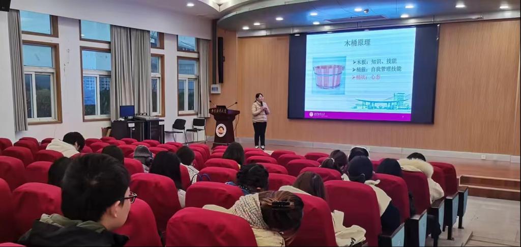 “携手暖心”心理健康专题讲座涵盖“拒绝精神内耗”“与压力共舞——考前心态调整”两个专题。“拒绝精神内耗”主题讲座由心理健康教育中心李浩琨主讲,从“如何理解精神内耗”“精神内耗的成因”“如何克服精神内耗”三个部分展开,引导同学们提升自我认同感,建立合理自我期待,关注当下接纳自我。“与压力共舞——考前心态调整”主题讲座由心理健康教育中心副主任吴垠主讲,由“考前心态调整情境”“压力来源和压力管理”“认知调整与积极的心理暗示”“心理放松训练”四个部分构成,引导同学们明晰当下困扰,接纳学习中的“高原现象”,在焦虑情绪出现时可以给自己一些积极的心理暗示和放松训练等。