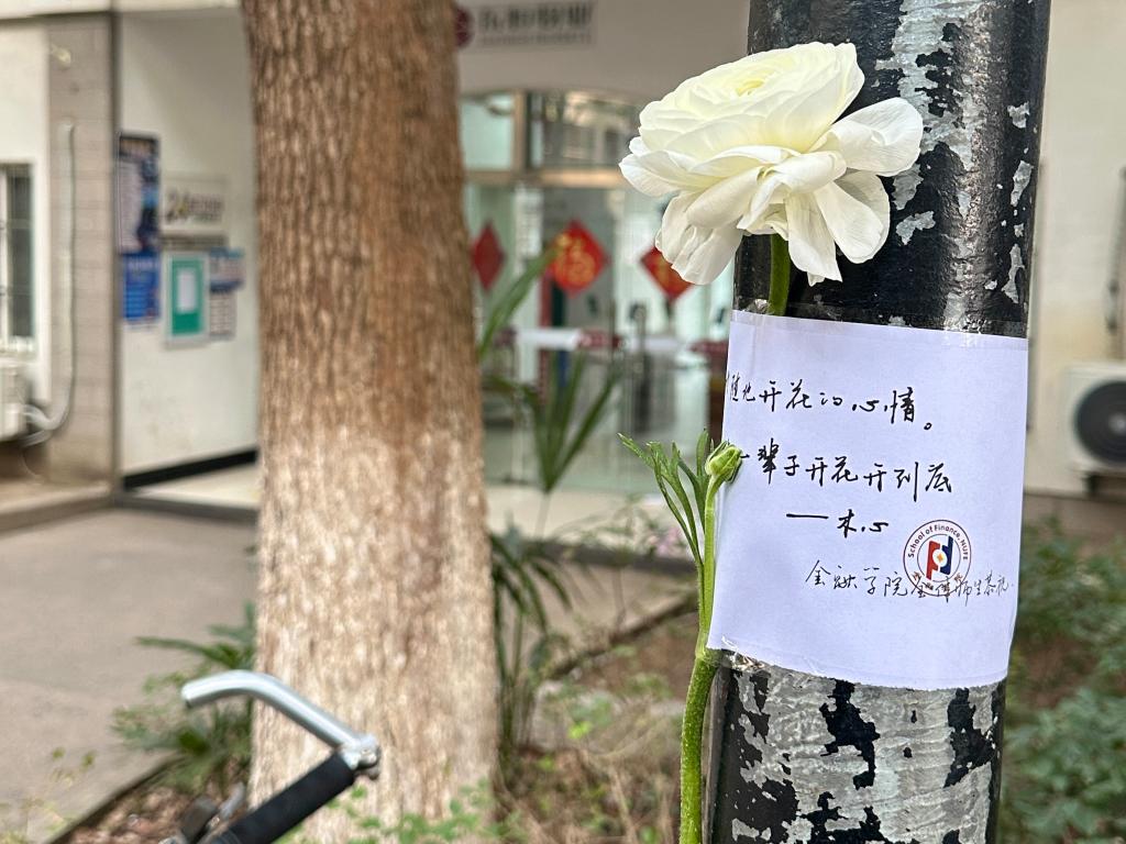 金融学院开展“应急玫瑰计划”,在校园各处粘贴了388朵玫瑰,并附送一句鼓励的话语,遇到即可自取。希望广大女性同胞更自信、更阳光、更健康,在中国式现代化建设中挺膺担当,在新时代新征程中展现奔腾不息的巾帼力量。