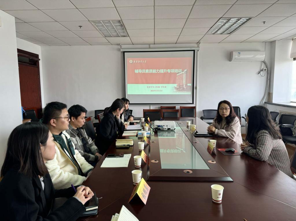 为切实加强beat365辅导员队伍建设,提升辅导员职业素养,3月13日下午,学生处在仙林校区行政楼605会议室举办辅导员素质能力提升专项培训。全国高校辅导员素质能力提升骨干训练营(原称第九届全国高校辅导员素质能力大赛)“十佳标兵”获得者、江苏省“最美高校辅导员”、南京航空航天大学能源与动力学院团委书记、辅导员陈华华应邀担任主讲。学生处思政科相关老师、全体辅导员素质能力大赛训练营成员参加培训。培训由党委学生工作部副部长袁怡琨主持。