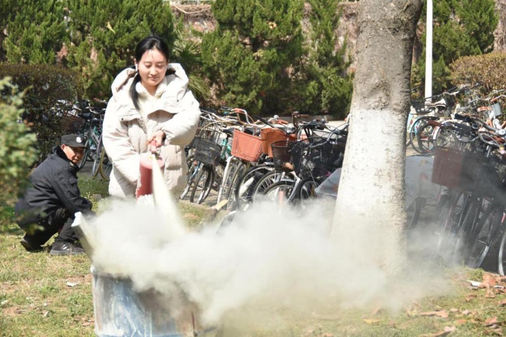 应急演练,防患未然。学院在西苑4号宿管站开展了“人人都是安全员——会计学院春季火灾疏散逃生大演练”,会计学院党委书记卜金涛、保卫处副处长蒋成虎、会计学院党委副书记布丹丹以及辅导员和全体学生寝室长参加活动。卜金涛书记强调了消防安全的重要性,希望同学们切实提升初起火灾扑救、疏散逃生能力,力争做到“人人讲安全、个个会应急”。蒋成虎副处长讲解了灭火器的种类、使用方法和注意事项,并进行了现场演示,学生踊跃参与,学习使用灭火器。随后,在管理站内楼道口燃放烟雾弹,模拟火源发生,现场指导师生如何安全疏散逃生。在蒋成虎副处长的指导下,现场师生弯腰低头、用湿毛巾捂住口鼻迅速而有序地完成了撤离,完成了本次消防演练。