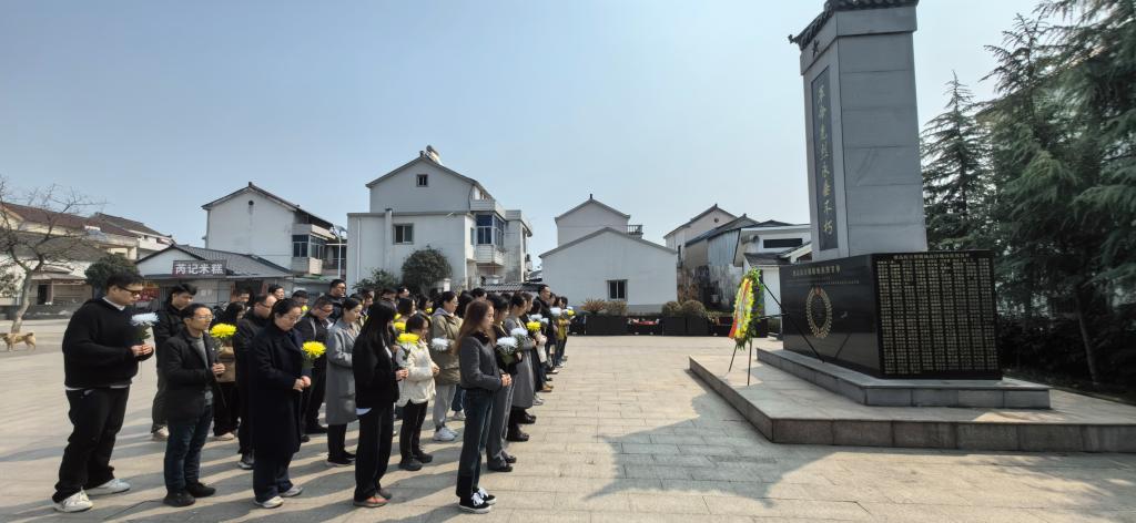 全体参训学员先是走进江苏省党史教育基地西舍“红色堡垒”,认真学习聆听新四军和原溧高县委县政府广泛发动群众支援前线、消灭日伪作出不朽功绩的感人故事。一栋栋历史厚重的旧址,一处处默默无声的红色遗迹,重现了革命先辈舍生取义、浴血奋战的光荣历史。随后,全体学员来到初心广场,站在革命烈士纪念碑前,向革命英烈敬献花篮,并行三鞠躬礼。