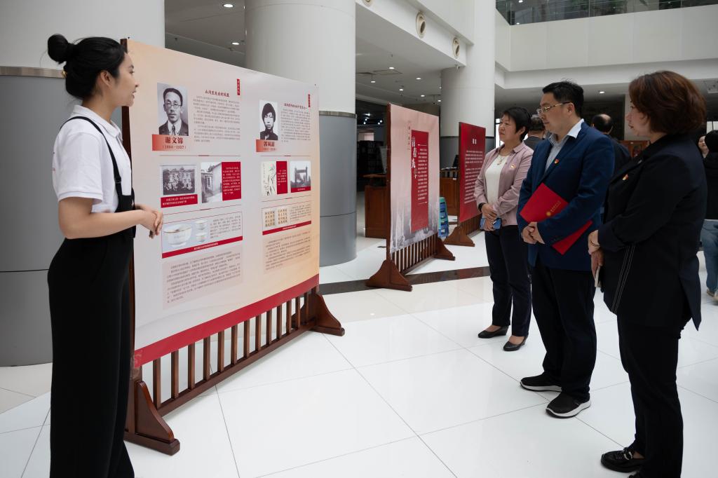 开展仪式结束后,与会领导嘉宾同党委学生工作部党支部、图书馆第一第二党支部党员教师,以及校青年共产主义学校暨菁英人才学校学员代表一起观展。