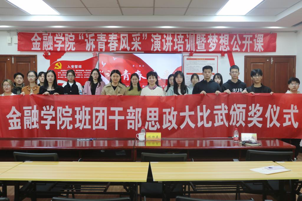 “扣扣子”课堂——以青年之情强报国之心。金融学院举办“班团干部思政技能大比武”“诉青春风采”演讲培训暨梦想公开课等系列活动,引导青年学生干部聚焦党史重大事件、红船精神、新中国建设、改革开放、乡村振兴等主题,激励学生积极向上、勇担复兴重任。与瑞众保险开展党建共建,双方单位党员们一起前往南京抗日航空烈士纪念馆缅怀先烈,让青年从业者和“准”从业者们学习先烈精神,坚定专业报国之心。