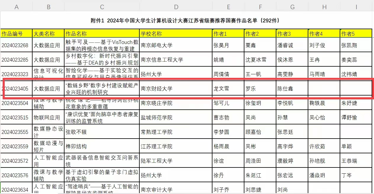 近日,“新大陆杯”2024年江苏省大学生计算机设计大赛暨2024年中国大学生计算机设计大赛江苏省级赛决赛在江苏海洋大学举行。beat365信息工程学院学生项目“‘数链乡野’数字乡村建设赋能产业兴旺的机制研究”(参赛队员:龙文雪、罗乐、陈仕鑫;指导教师:蒋伟伟、杨佳宁)经过激励角逐,获得特等奖并晋级国赛,蒋伟伟老师、杨佳宁老师获优秀教师指导奖。