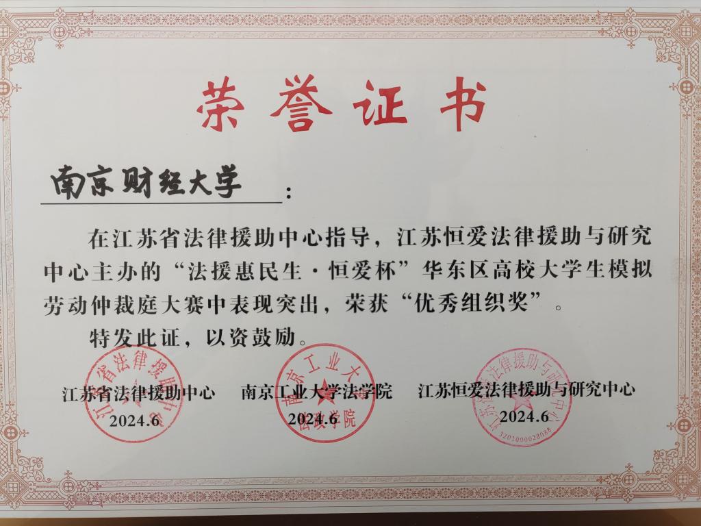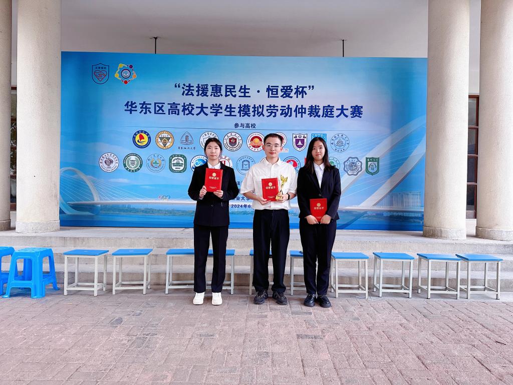 近日,第二届“法援惠民生·恒爱杯”华东区高校大学生模拟劳动仲裁庭大赛决赛在南京工业大学举办。beat365由汪华亮老师指导,邹雨婷、于利成、朱若愚组成的被申请人代表队经过激烈角逐,获“被申请人队”季军,提交的仲裁答辩书获评“优秀仲裁答辩书”,beat365荣获“优秀组织奖”。