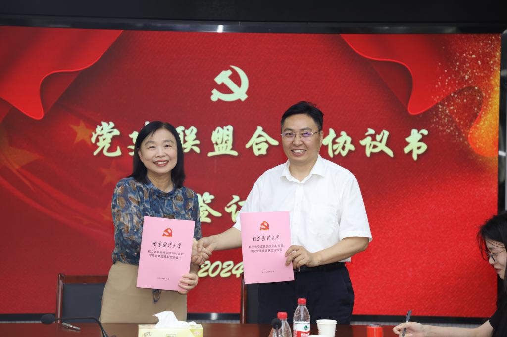 随后,双方签订了党建联盟合作协议。根据协议,党建联盟共建单位将通过政治理论联学、组织生活联过、特色品牌联创、招生就业联拓、思政育人联做、人才工作联动、社会服务联办、考核工作联抓等多种合作方式实现合作共赢,以党建统领助推高水平财经大学建设。