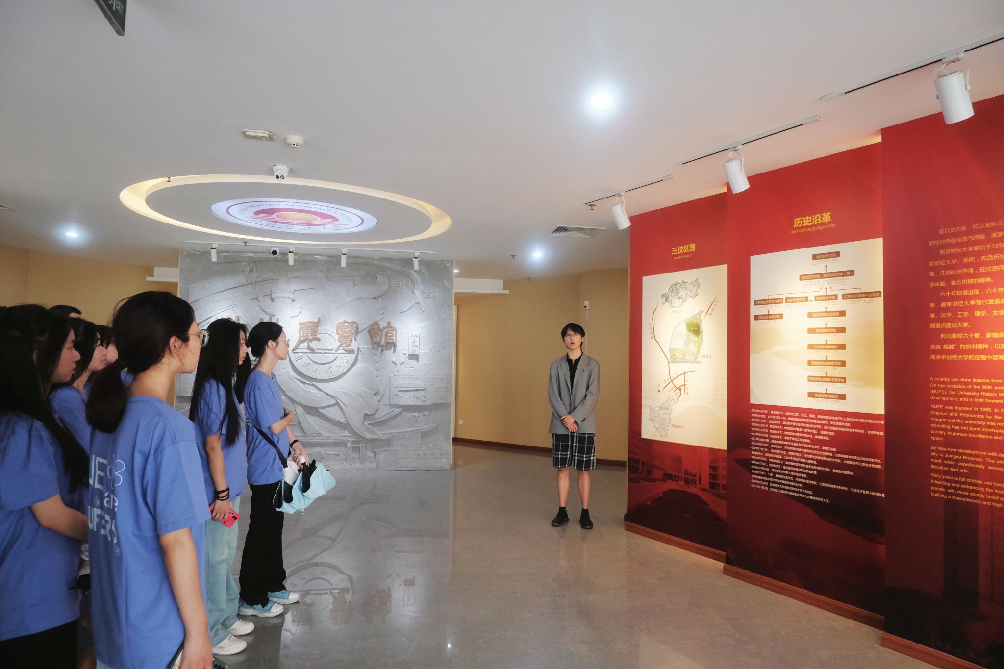 上午10点,参加暑期学校的全体中外学生前往校史馆参观学习。在讲解员的带领下,学生们通过参观展示厅、荣誉馆,观看历史照片和实物展览,了解学校的建校渊源、发展历程、历史文化等,进一步增强对学校的认同感和归属感。